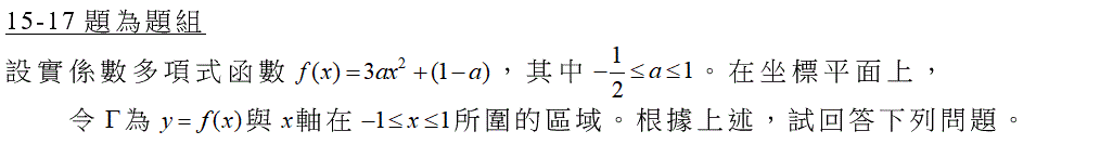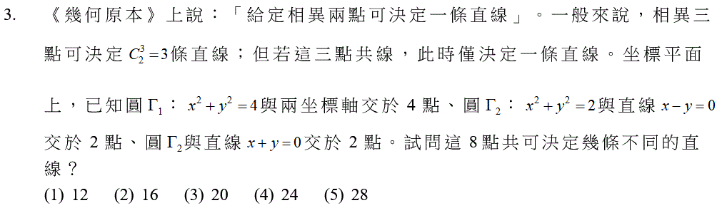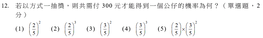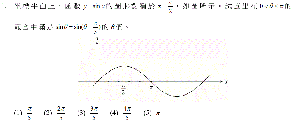 第1題至第3題,每題5個選項,其中只有一個是正確或最適當的選項。各題答對,得6分;答錯、未作答或畫記多於一個選項者,該題以零分計算。
