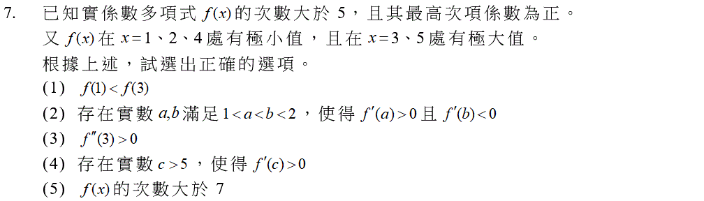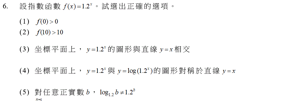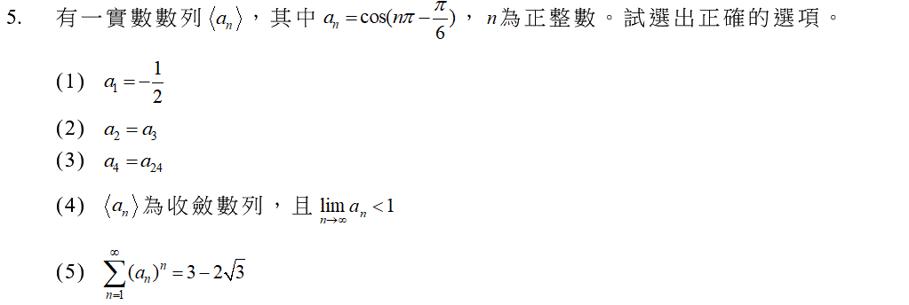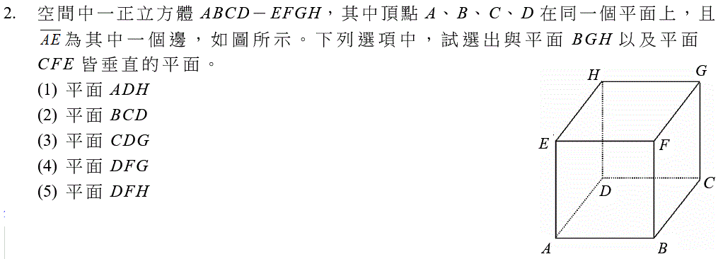 第4題至第8題,每題有5個選項,其中至少有一個是正確的選項。各題之選項獨立判定,所有選項均答對者,得8分;答錯k個選項者,得該題(n-2k)/n的分數;但得分低於零分或所有選項均未作答者,該題以零分計算。