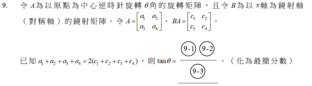 第9至第11題為選填題,每題6,須全部答對才給分,答錯不倒扣。