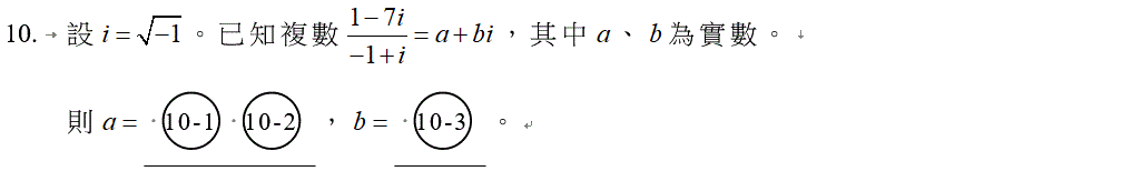第10至第12題為選填題,每題6,須全部答對才給分,答錯不倒扣。