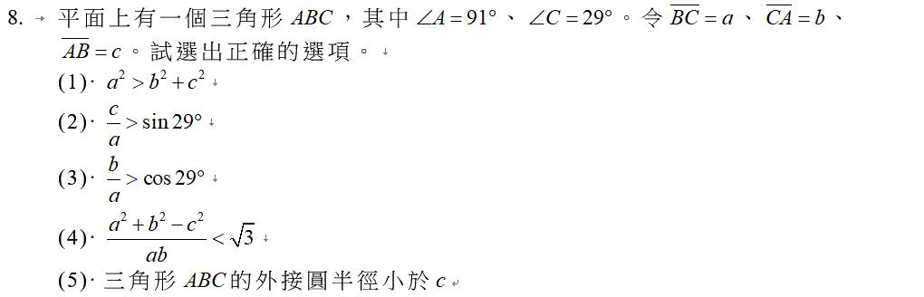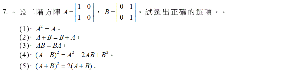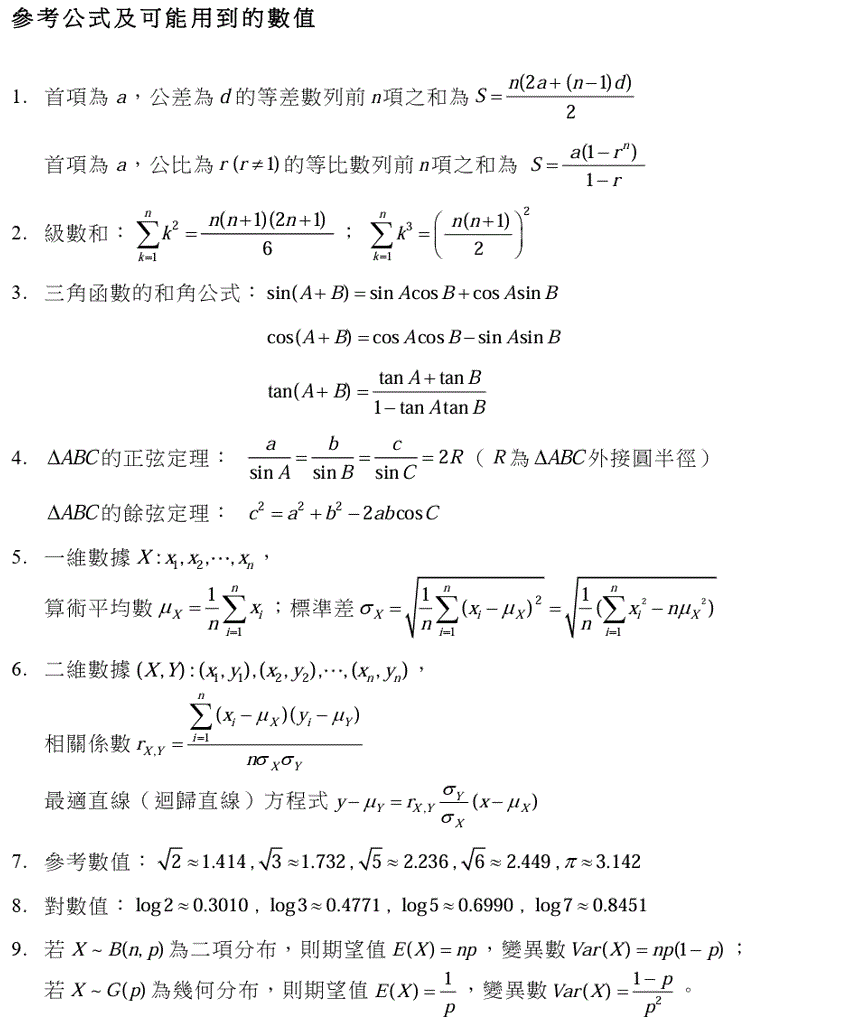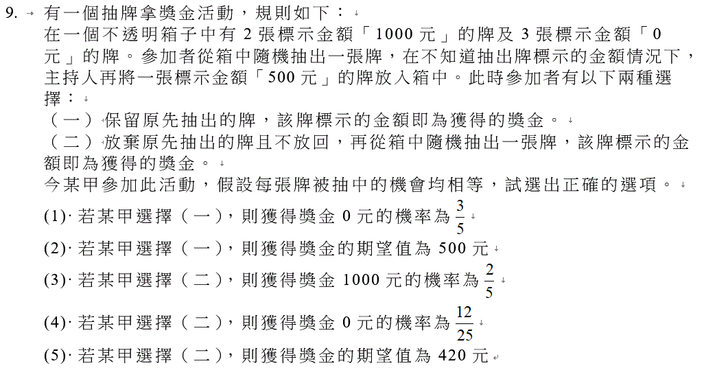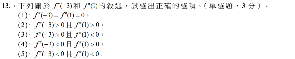 第7題至第9題,每題有5個選項,其中至少有一個是正確的選項。各題之選項獨立判定,所有選項均答對者,得8分;答錯k個選項者,得該題(n-2k)/n的分數;但得分低於零分或所有選項均未作答者,該題以零分計算。