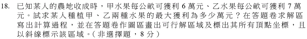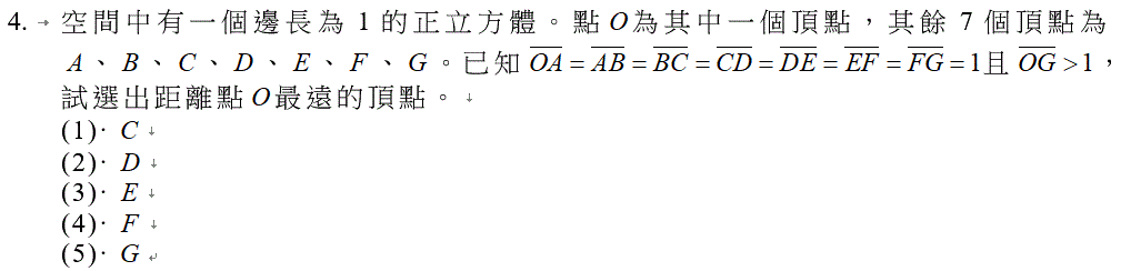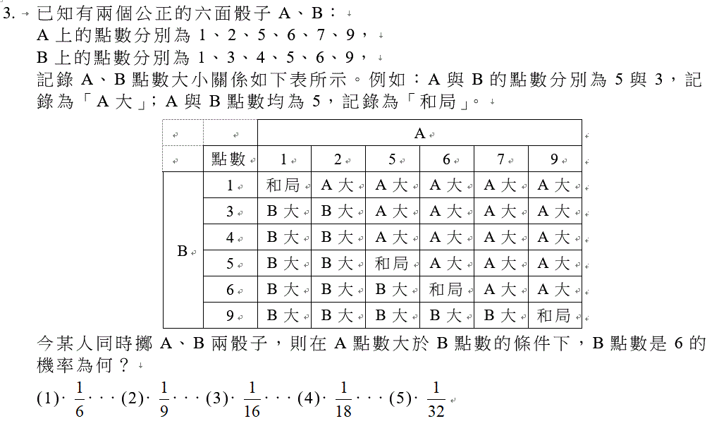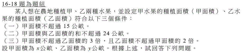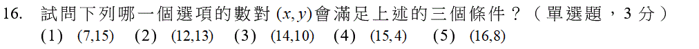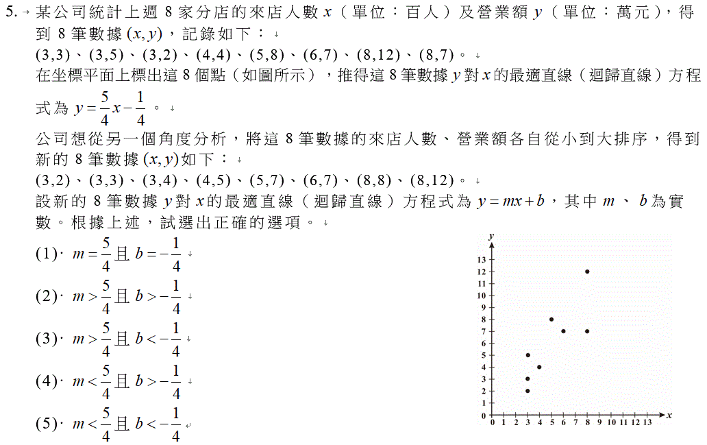 第1題至第6題,每題5個選項,其中只有一個是正確或最適當的選項。各題答對,得5分;答錯、未作答或畫記多於一個選項者,該題以零分計算。