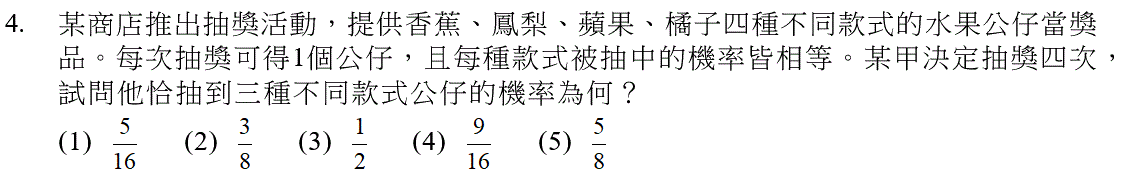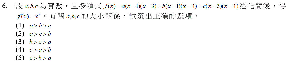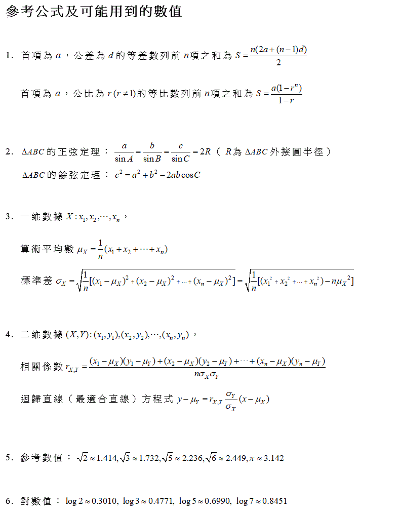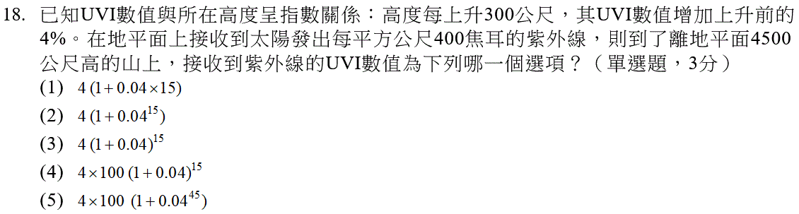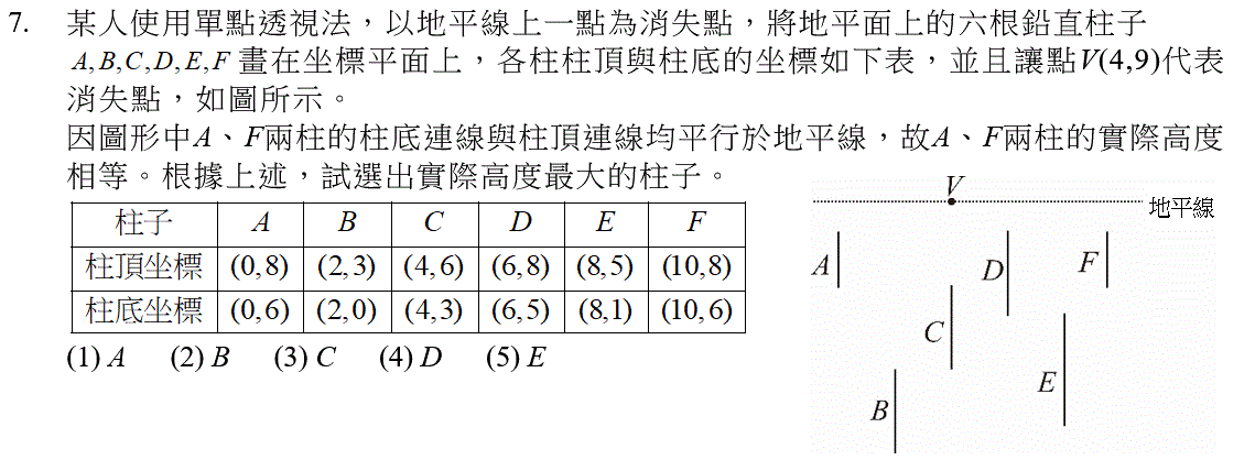 第1題至第7題,每題5個選項,其中只有一個是正確或最適當的選項。各題答對,得5分;答錯、未作答或畫記多於一個選項者,該題以零分計算。